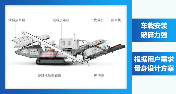 履带圆锥式破碎站由履带底盘、车架总成、主机及辅助设备、动力系统和液压电控系统组成。工作时,物料经振动筛的初步筛分,进入圆锥破碎机进行破碎处理,经输送带实现物料的循环破碎,通过圆振动筛构成闭路系统,成品物料由输送机输出,进行连续破碎作业。